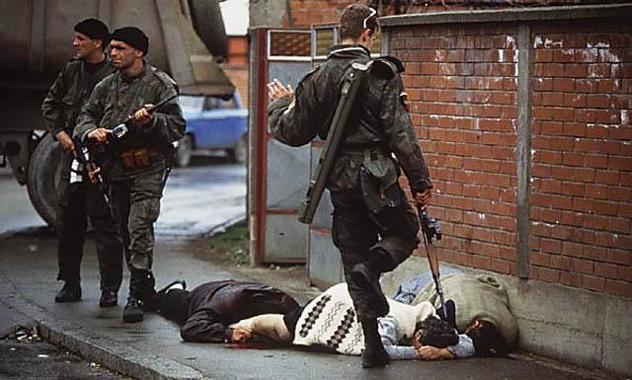 Fotografija iz marta 1992. godine, uhvaćena kroz neskriveni objektiv Rona Haviva dok je stajao nasuprot Arkanovih "Tigrova", ovjekovječila je iživljavanje nad ubijenim bijeljinskim civilima. Ono što će naredne tri i po godine postati brutalna bosanskohercegovačka stvarnost, a dvije i po decenije kasnije predmet istraživanja.